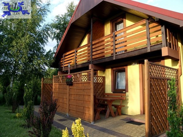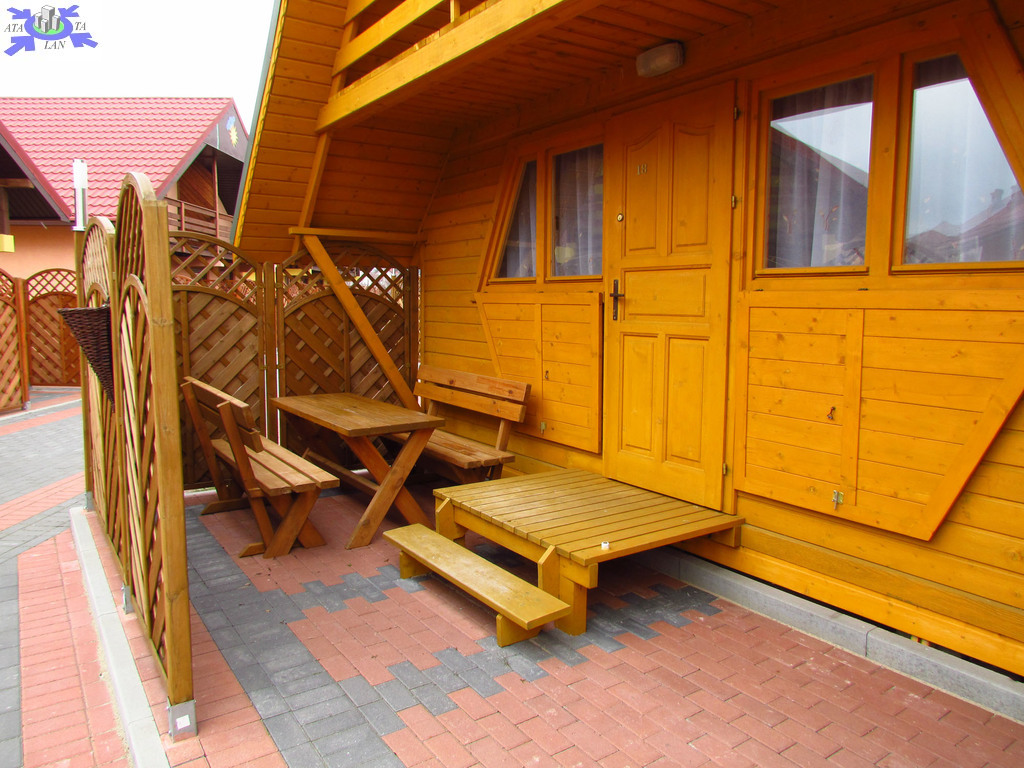 Domki drewniane to 6 osobowe, piętrowe "bliźniaki". Połączone tylnymi ścianami z wejściami po przeciwnych stronach, każda z części posiada balkon. Przed wejściem do każdego domku jest ogródek z meblami ogrodowymi (stół i 2 ławki) ogrodzony pergolami. Domek w całości wykonany jest z drewna.