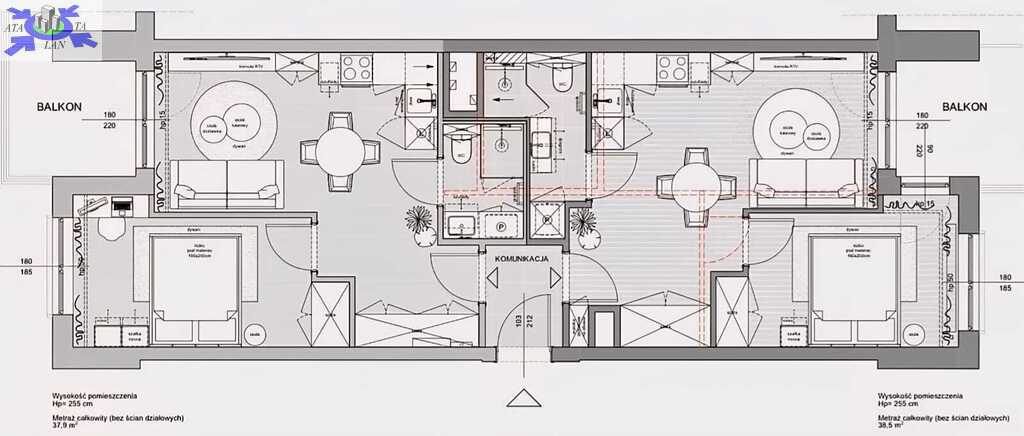 4. pokojowy apartament, dający możliwość zaaranżowania 2. niezależnych mieszkań (po 38 m2 każde),