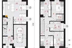 Poszczególne połówki postawione są na działkach o powierzchni 356 oraz 318 m2. Dom wybudowany według projektu Archeon "Dom w riveach 8 (GB)".