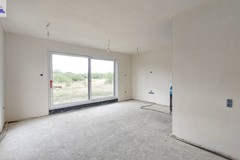 - salon z aneksem kuchennym (27.75 m2) i wyjście ma na taras i dalej na ogród,