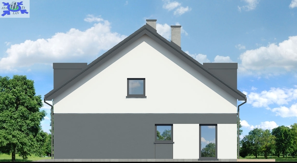 Poszczególne połówki postawione są na działkach o powierzchni 356 oraz 318 m2. Dom wybudowany według projektu Archeon "Dom w riveach 8 (GB)".