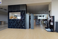 Wewnętrzne ściany gładkie, na podłogach w salach sprzedaży panele, w pomieszczeniach biurowych i socjalnych terakota.