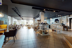 Na parterze, poza salą sprzedaży znajdują się węzeł sanitarny i pokój biurowy. Na pierwszym piętrze sala sprzedaży, oraz węzeł sanitarny, kotłownia i pokój biurowy. Drugie piętro to kolejna sala sprzedaży, zaplecze dla personelu i toaleta.