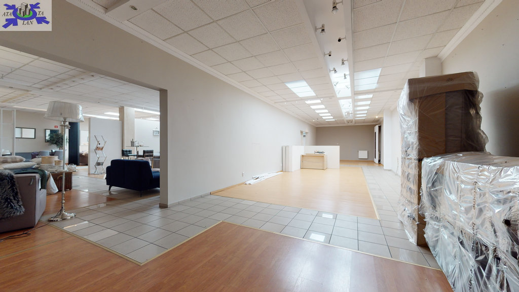 Na parterze, poza salą sprzedaży znajdują się węzeł sanitarny i pokój biurowy. Na pierwszym piętrze sala sprzedaży, oraz węzeł sanitarny, kotłownia i pokój biurowy. Drugie piętro to kolejna sala sprzedaży, zaplecze dla personelu i toaleta.