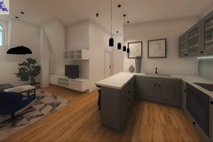 Obecnie mieszkanie funkcjonuje jako 3-pokojowe (w księdze wieczystej opisane jako pokój dzienny z aneksem kuchennym, pokój, łazienka).