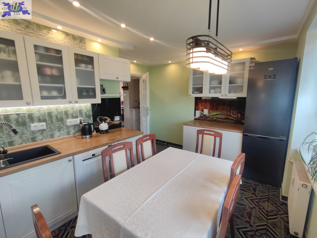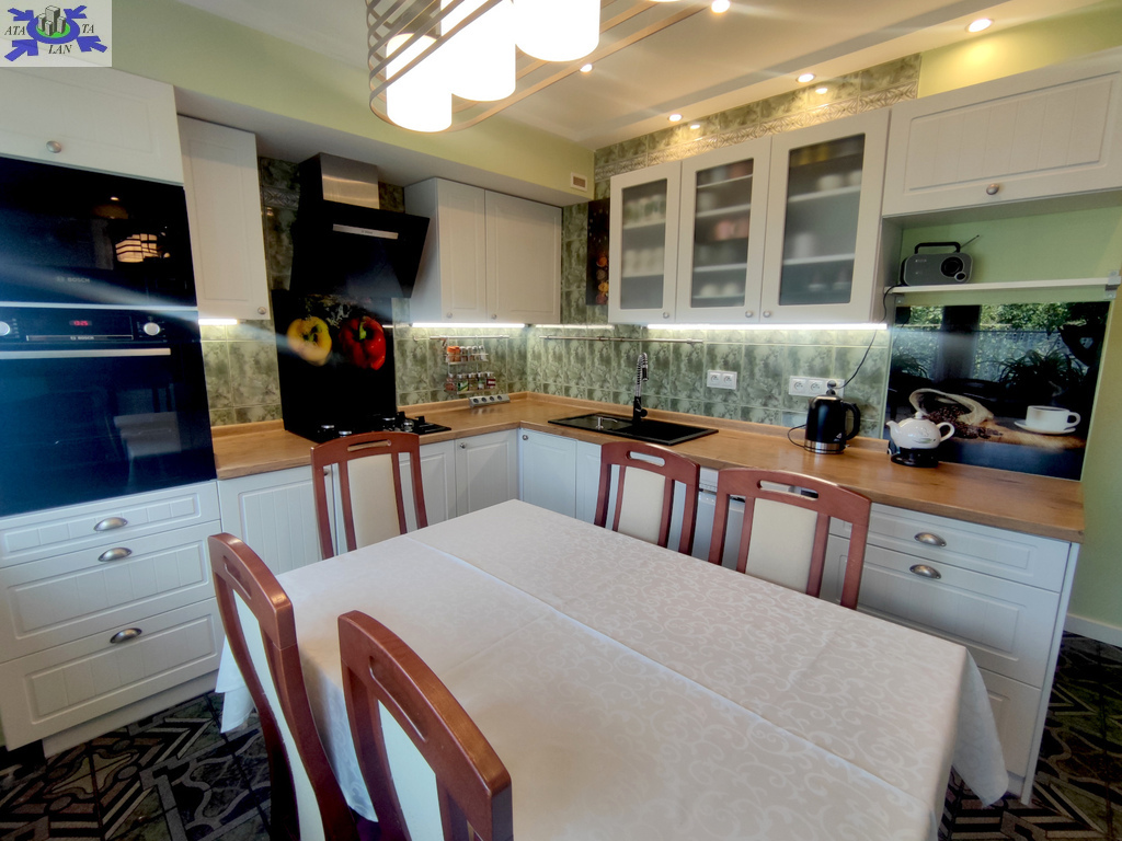 Duża kuchnia z wydzieloną częścią "jadalnianą", liczne szafki, wygodne oświetlenie LED różnych stref daje poczucie wygody i komfort użytkowania.