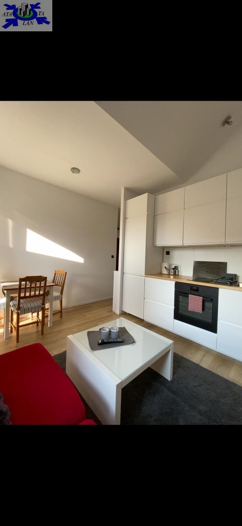 OPIS MIESZKANIA pokój z aneksem kuchennym oraz wyjściem na taras o powierzchni 11 m2. Pokój umeblowany, zabudowa kuchenna wysokiej klasy z urządzeniami AGD (piekarnik, płyta grzewcza, lodówka z zamrażarką)