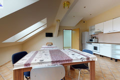 - w budynku wydzielona jest część mieszkalna-parter (kuchnia z salonem, 2 pokoje, korytarz, łazienka) z samodzielnym niezależnym wejściem. Nad częścią mieszkalną znajduje się poddasze (kuchnia, 3 pokoje, łazienka, korytarz).