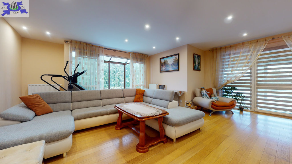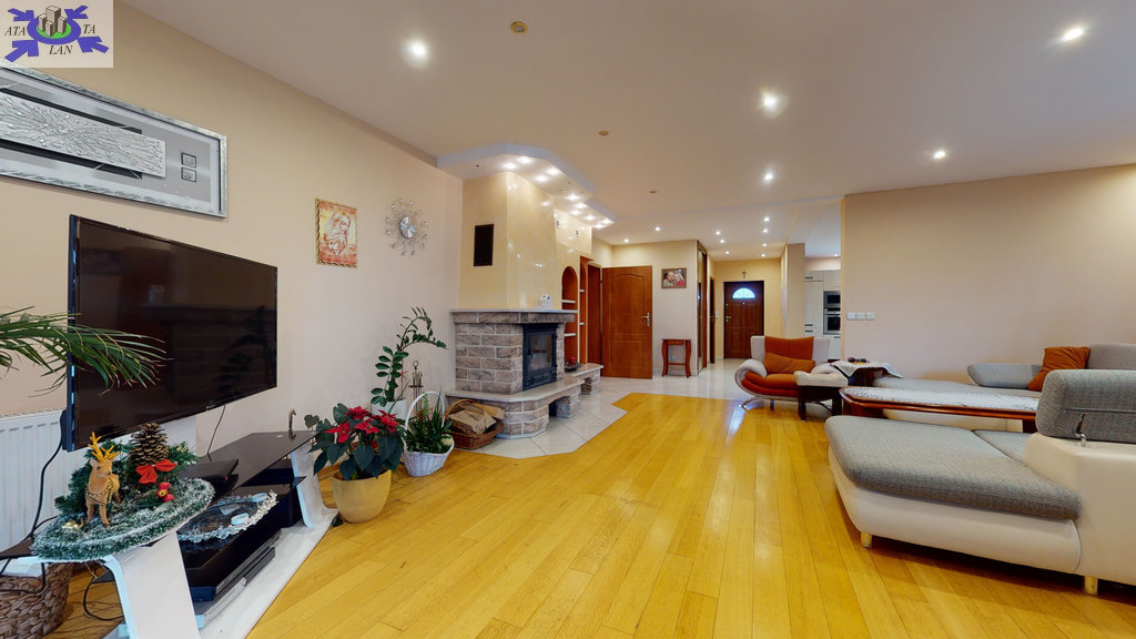 - nieruchomość posiada ładny ogród z częścią rekreacyjno-wypoczynkową. W części mieszkalnej znajduje się ogród zimowy i kominek.