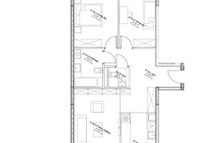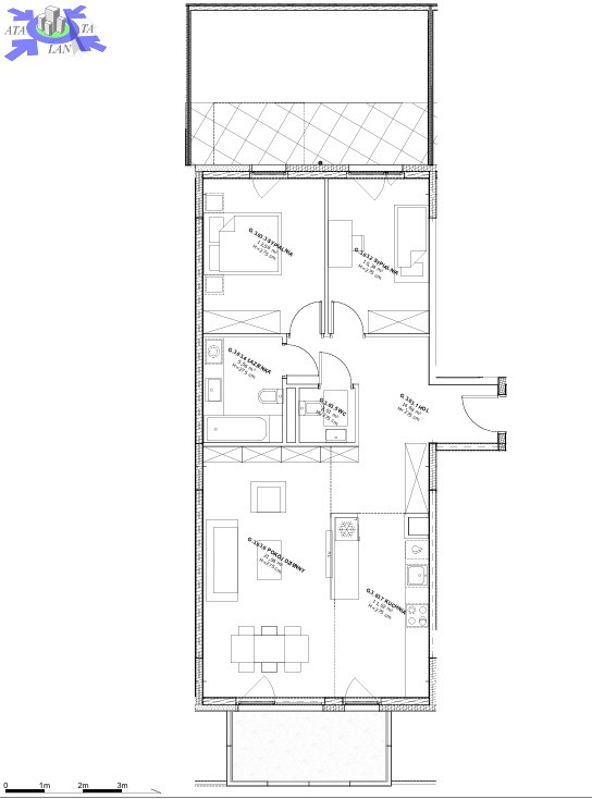 - 2 sypialni (12,58 m2 i 10,34 m2) z wyjściem na taras (9,81 m2) i ogródek (14,70 m2),