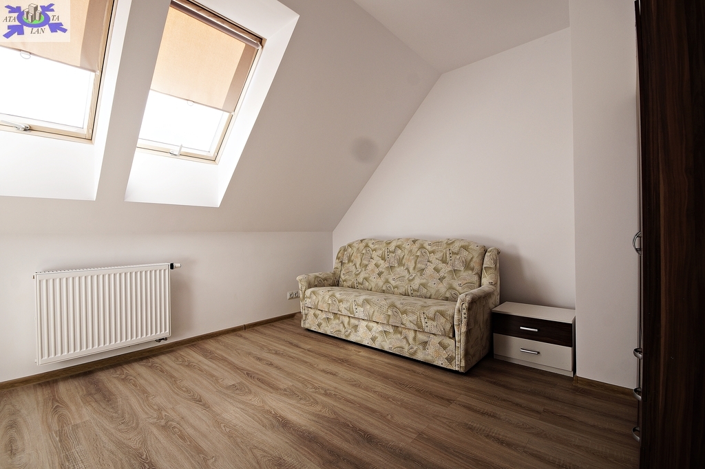 Piętro 3 sypialnie (25 m2, 20 m2, 12 m2), łazienka, korytarz.