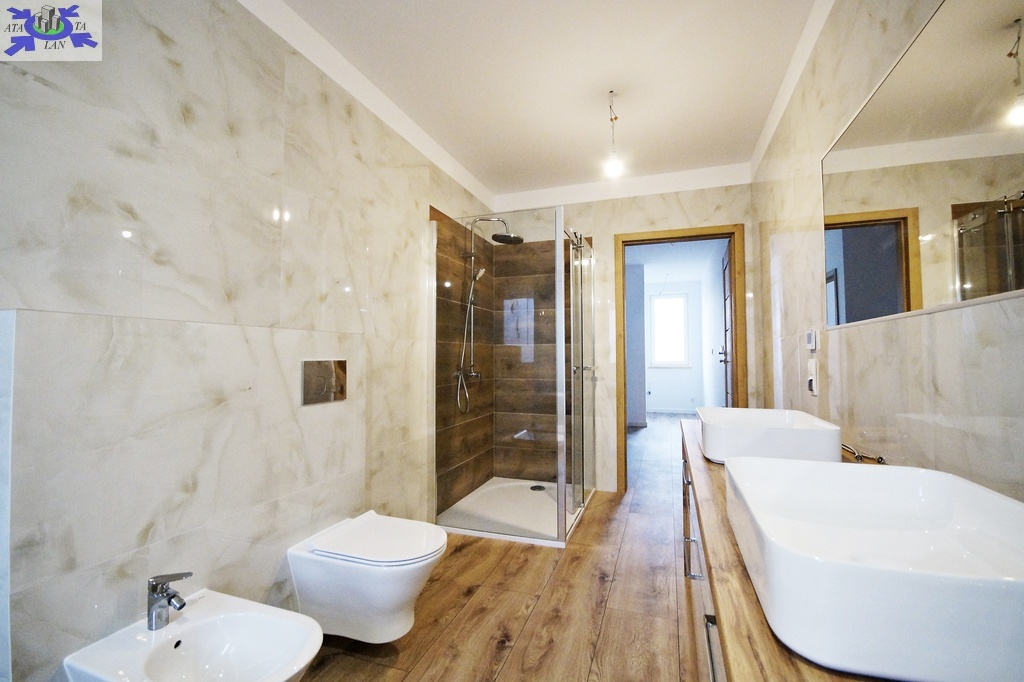 Dom składa się z 4 pokoi, dużego salonu na parterze połączonego z aneksem kuchennym z wyjściem na słoneczny taras, 3 sypialni na piętrze oraz pomieszczenia gospodarczego.