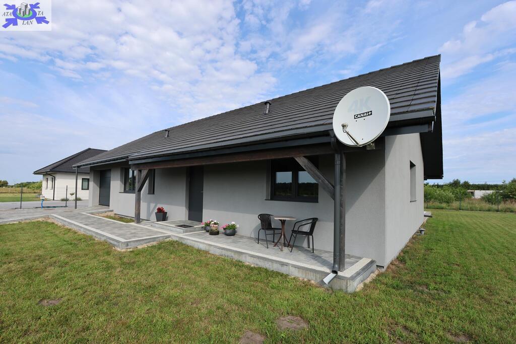 Dom parterowy o pow. użytkowej 109,80 m2 (salon z aneksem kuchennym i jadalnią + 3 pokoje, 2 łazienki, garderoba), położony na osiedlu domów jednorodzinnych, w niedalekiej odległości od lasu. Dojazd drogą prywatną utwardzoną. To doskonała nieruchomość dla rodziny 2+2.