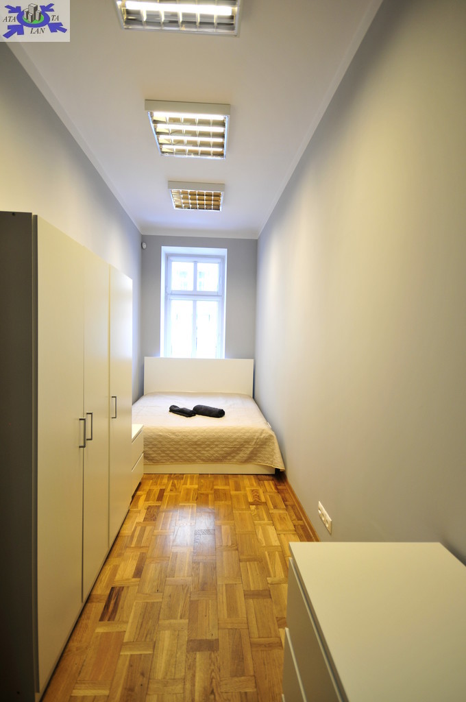 - Czwarty pokój o pow. ok. 8 m2, uposażony w łóżko szerokie z materacem, sofę, komodę, szafę, szafkę nocną,