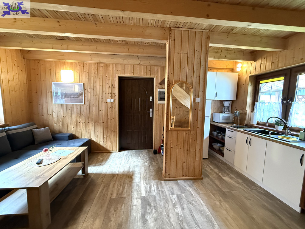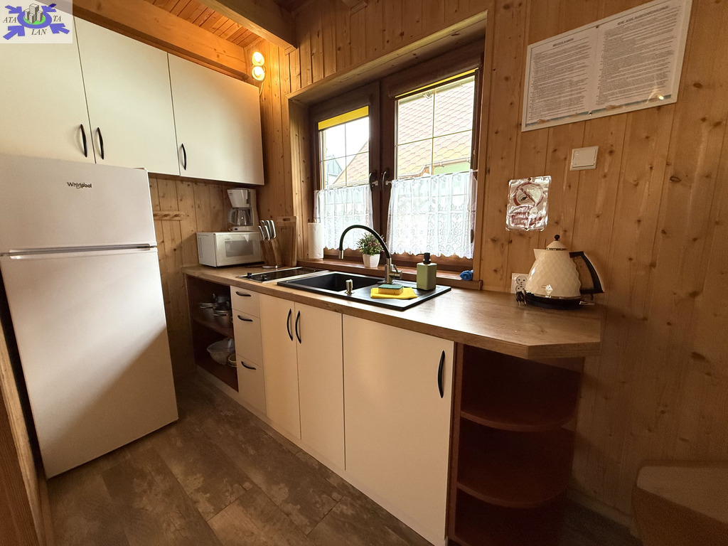 Kuchnia w pełni wyposażona, osobny pokój sypialny, łazienka, strych gospodarczy