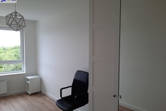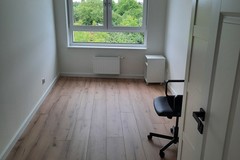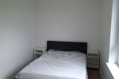 Ściany i sufity gładź i pomalowane farbami Flugger. Panele podłogowe wodoodporne firmy Meister. Listwy przypodłogowe z płyty MDF wysokości 8 cm. Karnisze sufitowe wraz z zasłonami IKEA Majgul. Łóżko tapicerowane grafitowe 140 cm IKEA BJORBEKK z materacem piankowym twardym AKREHAMN wraz ze zdejmowanym pokrowcem. Stolik nocny. Lampa wisząca czarna i lampa nocna stojąca.