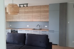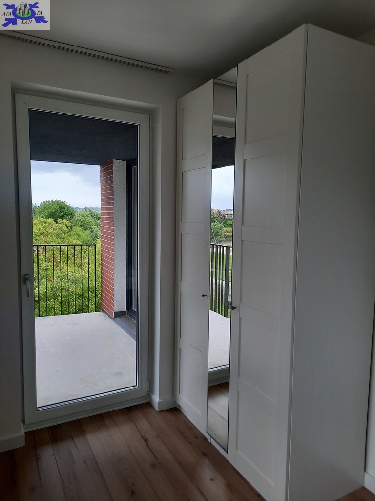 Pokój dzienny połączony z aneksem kuchennym, sypialnia z wejściem z korytarza, sypialnia z balkonem - wejście z salonu i łazienka, przedpokój, balkon. Ogrzewanie i ciepła woda miejskie. Wysoki standard wykończenia mieszkania. Dostępny od 1 października 2025 roku.