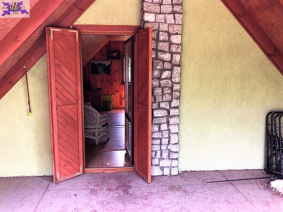 W skład domku wchodzą Salon z wyjściem na przestronny, zadaszony taras oraz wejściem na poddasze użytkowe
