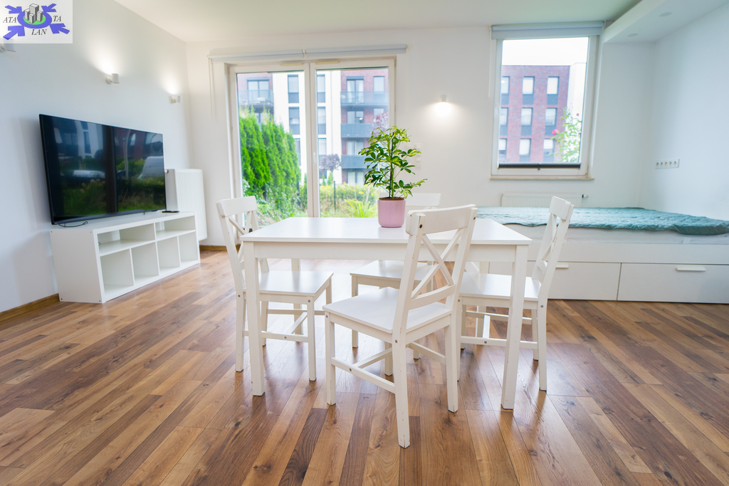 Nieruchomość o funkcjonalnym rozkładzie pomieszczeń, (przearanżowana z dwupokojowego mieszkania w otwartą formę) z oddzielną kuchnią, ogrodem i miejscem na taras.