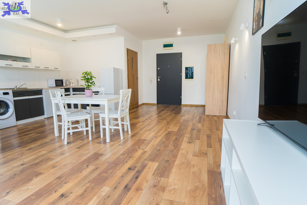 Na powierzchnię mieszkania składają się salon z aneksem kuchennym (typu "open space") oraz wyjściem na taras, łazienka z WC.