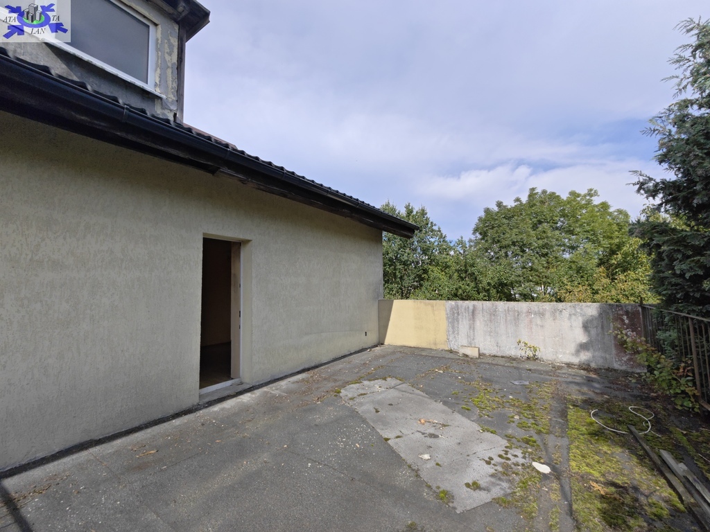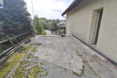 - Schody zewnętrzne i wewnętrzne betonowe wylewane i na piętro odeskowane. Schody zewnętrzne do ogrodu betonowe. Większa powierzchnia zniszczona, ubytki w betonie i w płytkach. Taras na piętrze (nad dobudówką i garażem) oraz schody z budynku na ogród porośnięte mchem, z ubytkami w stopniach i rozsypujące się balustrady.