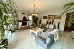 Dom został zaprojektowany z myślą o wygodzie i funkcjonalności. Na parterze znajduje się przestronna, jasna kuchnia z częścią jadalnianą, nowoczesnym sprzętem AGD i dużą ilością miejsca do przechowywania. Tuż obok znajduje się salon z kominkiem, wyjściem na taras i pięknym widokiem na ogród oraz staw.