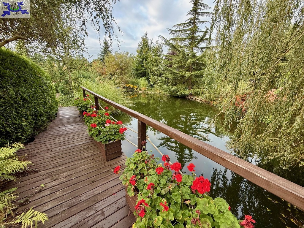 Ogród Działka o powierzchni 1946 m2 jest pięknie zagospodarowana - znajdziesz tu mnóstwo roślin ozdobnych, drzewa, krzewy oraz duży staw z pomostem, który nadaje posesji niepowtarzalnego klimatu. Idealne miejsce na relaks lub poranną kawę przy śpiewie ptaków.