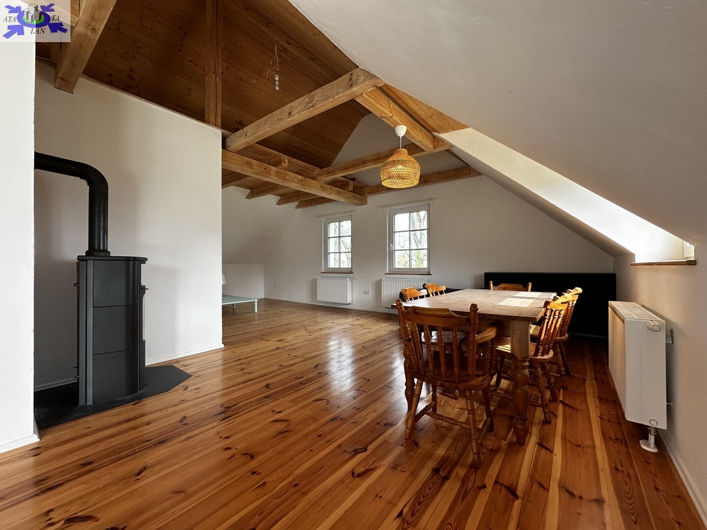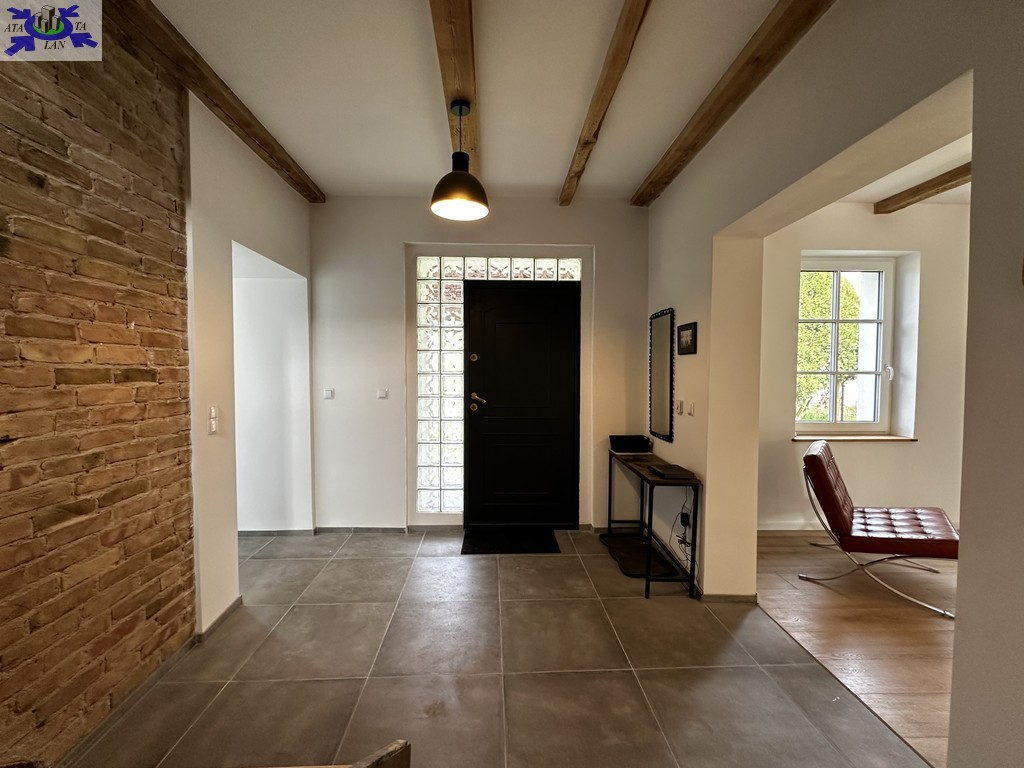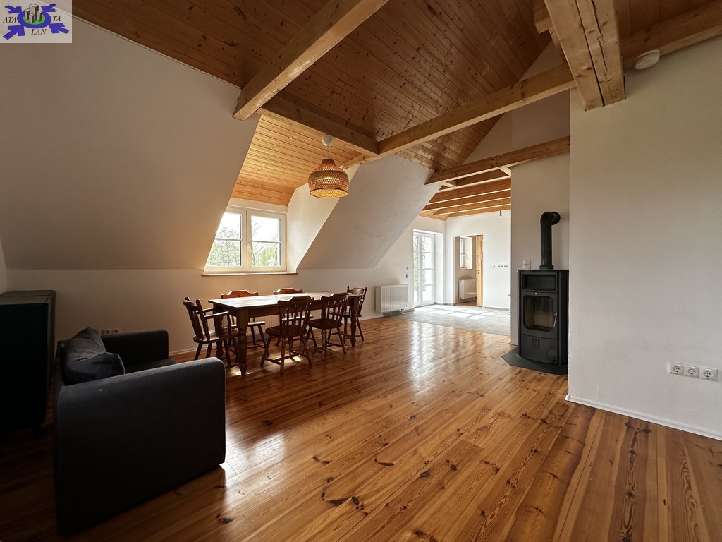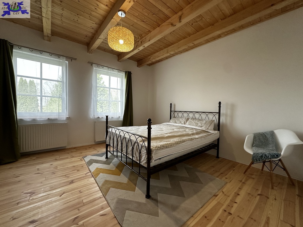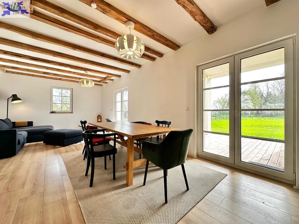Dom przeszedł generalny remont. Zachowane zostały belki konstrukcyjne oraz drewno, które w połączeniu z nowoczesnym stylem nadają nieruchomości niesamowity klimat.