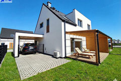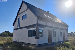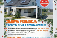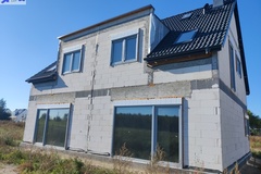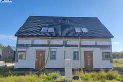 Dwa domy w zabudowie bliźniaczej, usytuowane na działce o powierzchni 600 m2. Powierzchnia całkowita obu domów to 160 m2 ( 80 m2 każdy) plus 2 miejsca postojowe. Na parterze każdego z domów znajduje się salon z aneksem kuchennym o powierzchni 31,89 m2 z wyjściem na zadaszony taras, wc z kabiną prysznicową (3,12m2), korytarz (3,25m2) oraz powierzchnia pomocnicza (3,02m2). Na piętrze o powierzchni całkowitej 37,63m2 znajdują się 3 pokoje i łazienka.