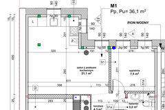 salon z aneksem kuchennym 21,1 m2sypialnia 7,5 m2łazienka 3,2 m2korytarz 4,3 m2
