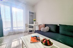 Kuchnia wyposażona w meble w zabudowie oraz sprzęt AGD lodówka z zamrażalką, płyta grzewcza, okap, zmywarka, mikrofalówka. W łazience narożna wanna, umywalka, toaleta, pralka. W sypialni znajduje się w duże łóżko, komodę oraz szafę w zabudowie. Salon mieści kanapę, stolik kawowy oraz stół z krzesłami. Z salonu również wyjście na balkon. Dodatkowo do dyspozycji są dwie szafy - jedna przy salonie, druga we wspólnym przedpokoju.