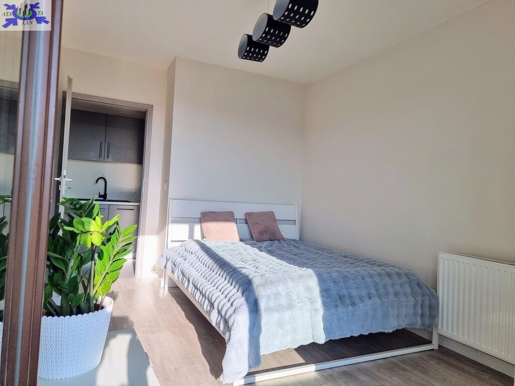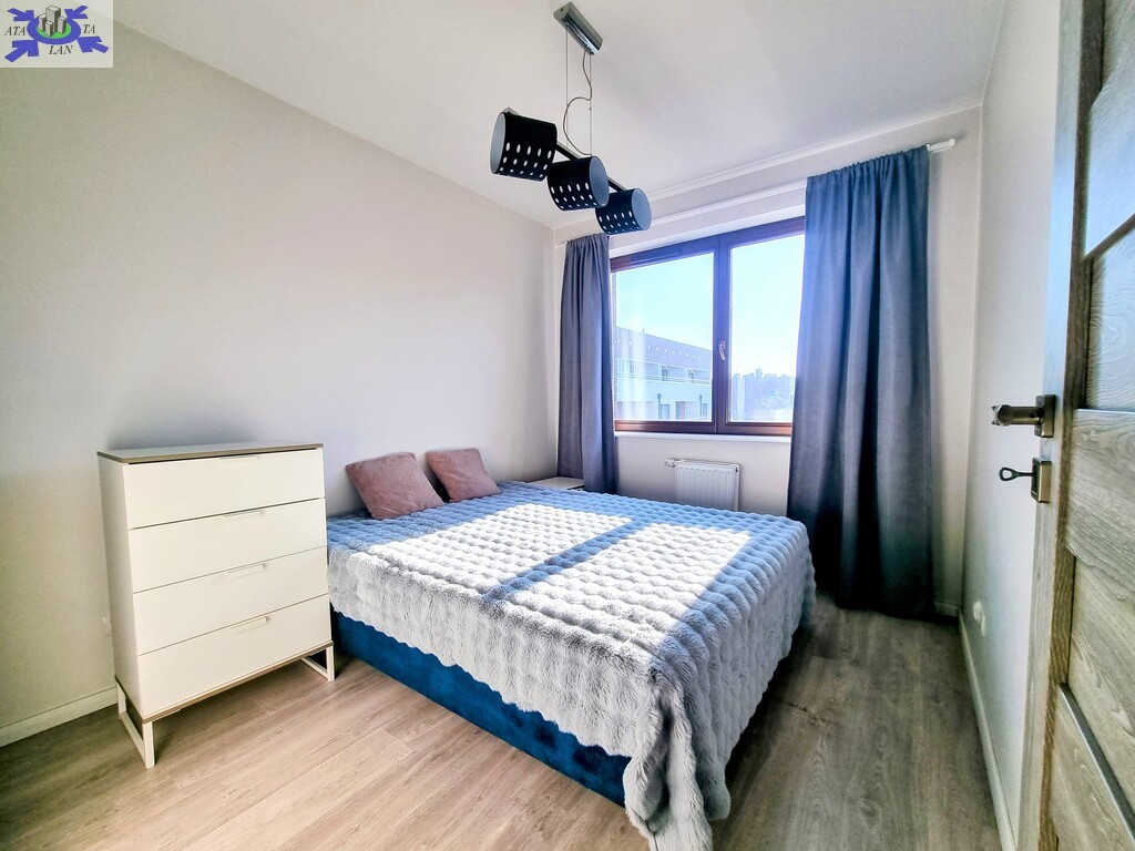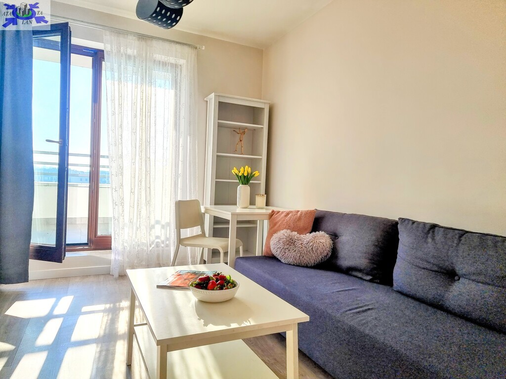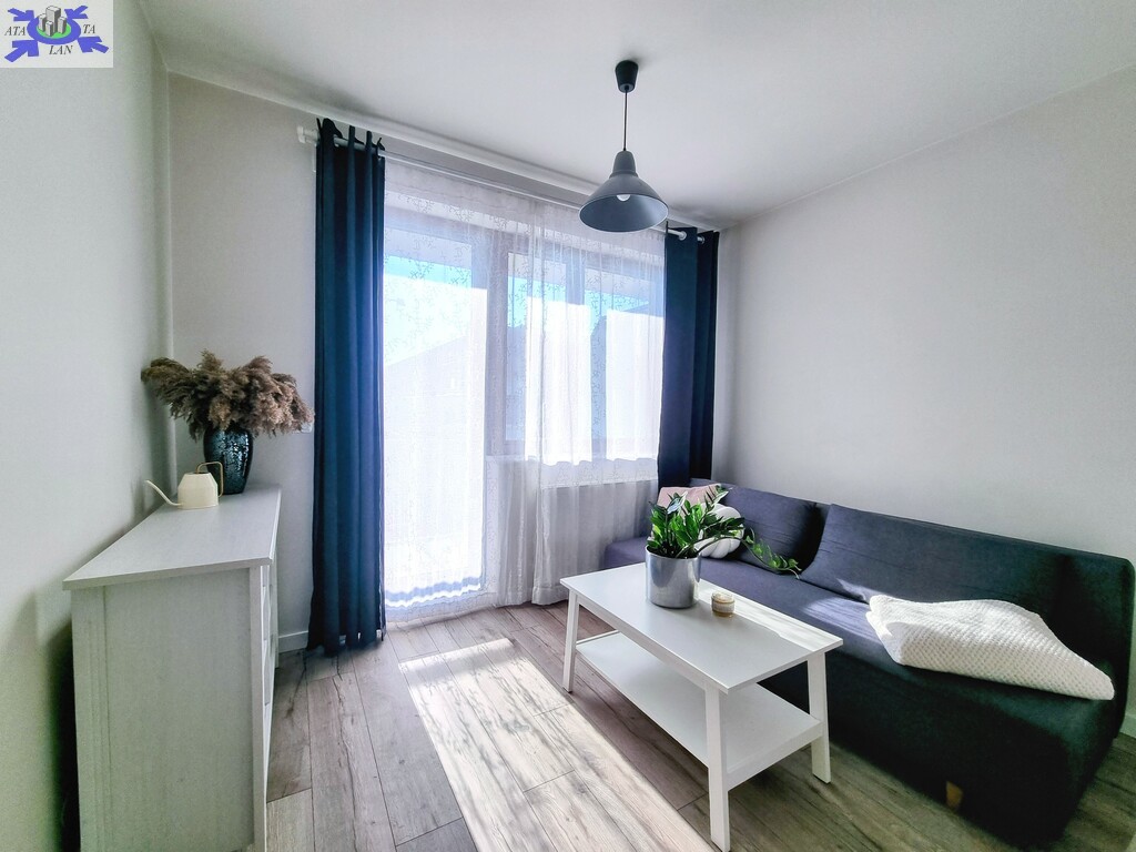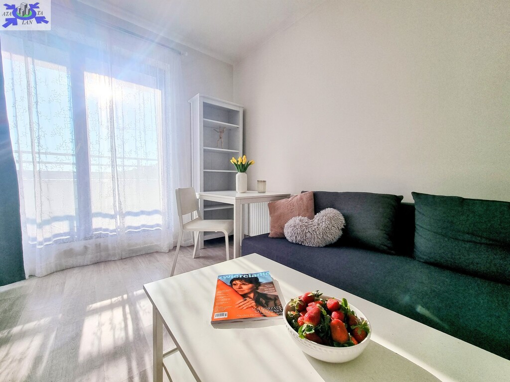 Kuchnia wyposażona w meble w zabudowie oraz sprzęt AGD lodówka z zamrażalką, płyta grzewcza, okap, zmywarka, mikrofalówka. W łazience narożna wanna, umywalka, toaleta, pralka. W sypialni znajduje się w duże łóżko, komodę oraz szafę w zabudowie. Salon mieści kanapę, stolik kawowy oraz stół z krzesłami. Z salonu również wyjście na balkon. Dodatkowo do dyspozycji są dwie szafy - jedna przy salonie, druga we wspólnym przedpokoju.
