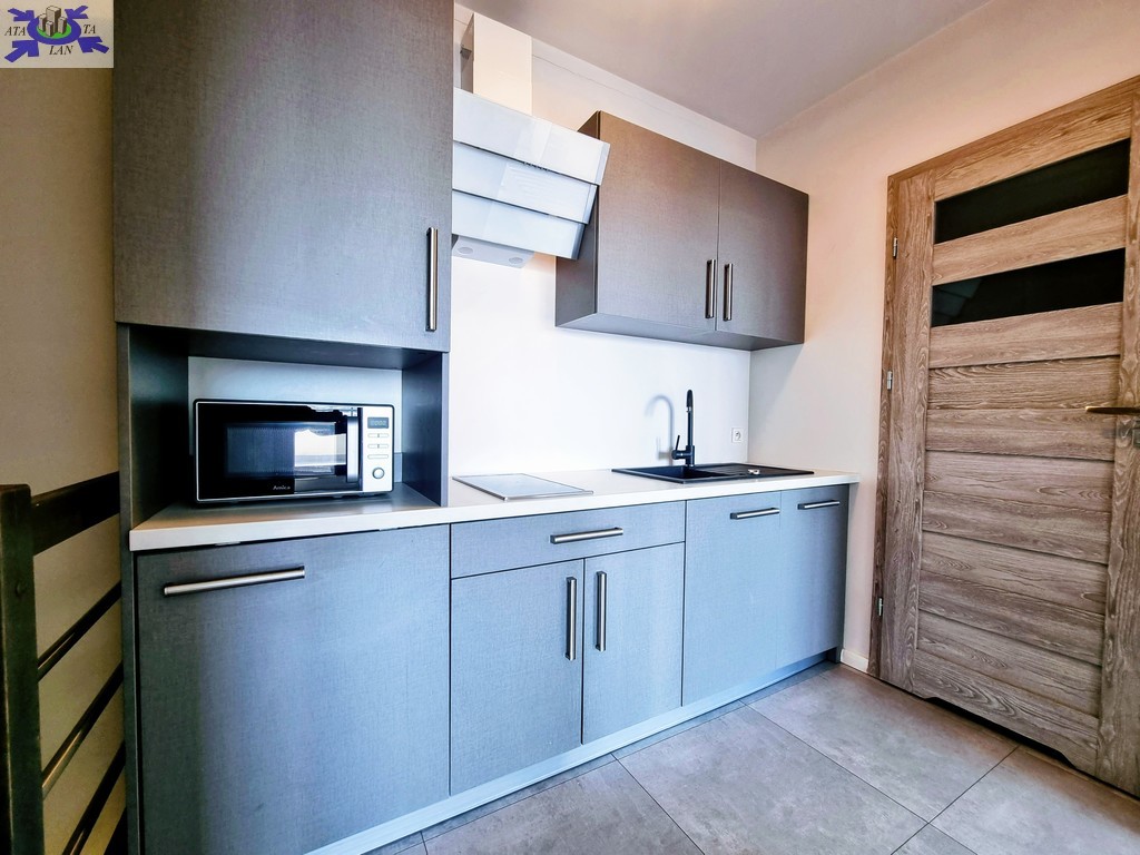 Kuchnia wyposażona w meble w zabudowie oraz sprzęt AGD lodówka, płyta grzewcza, okap, zmywarka, mikrofalówka. W łazience kabina prysznicowa, umywalka, toaleta, pralka. W pierwszym pokoju znajduje się w duże łóżko, szafa oraz stolik, w drugim pokoju rozkładana kanapa, stolik kawowy, komoda oraz regał i biurko. Z obu pokoi wyjście na duży taras, idealny do relaksu.
