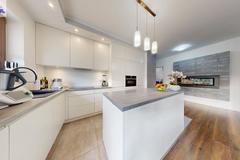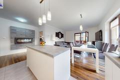 - przestronny, niesamowicie doświetlony salon z aneksem kuchennym. Zabudowa kuchenna aż do sufitu, wysokiej jakości, robiona na wymiar wraz z wyspą. Z salonu wychodzi się na bardzo słoneczny taras z południową wystawą,