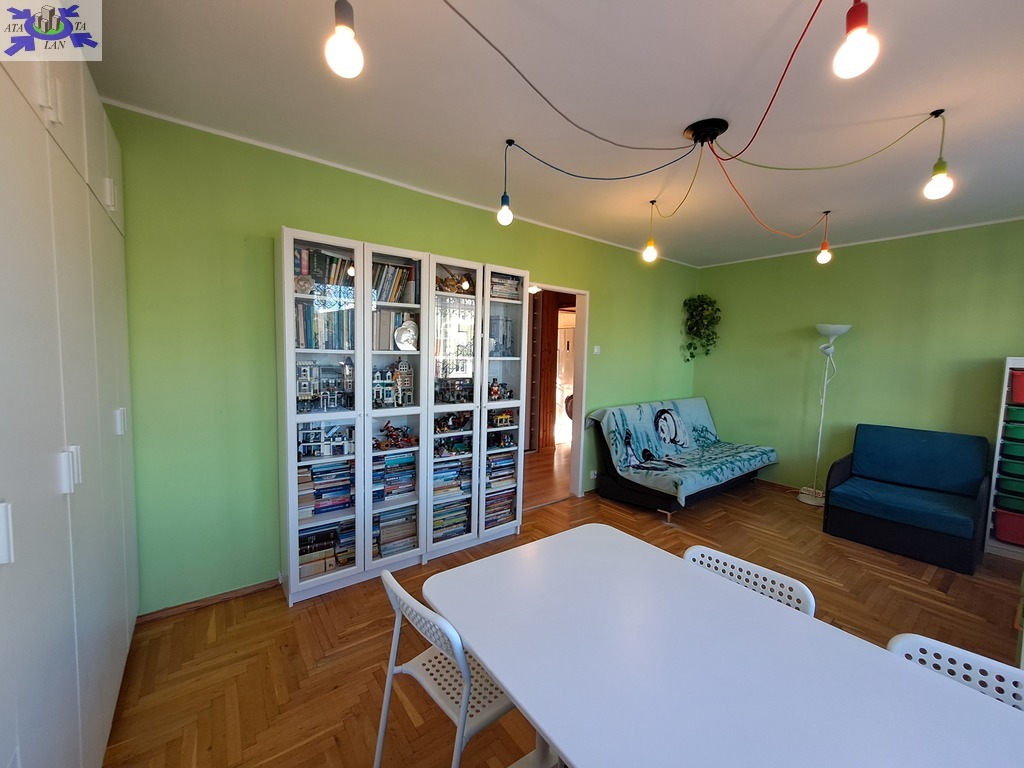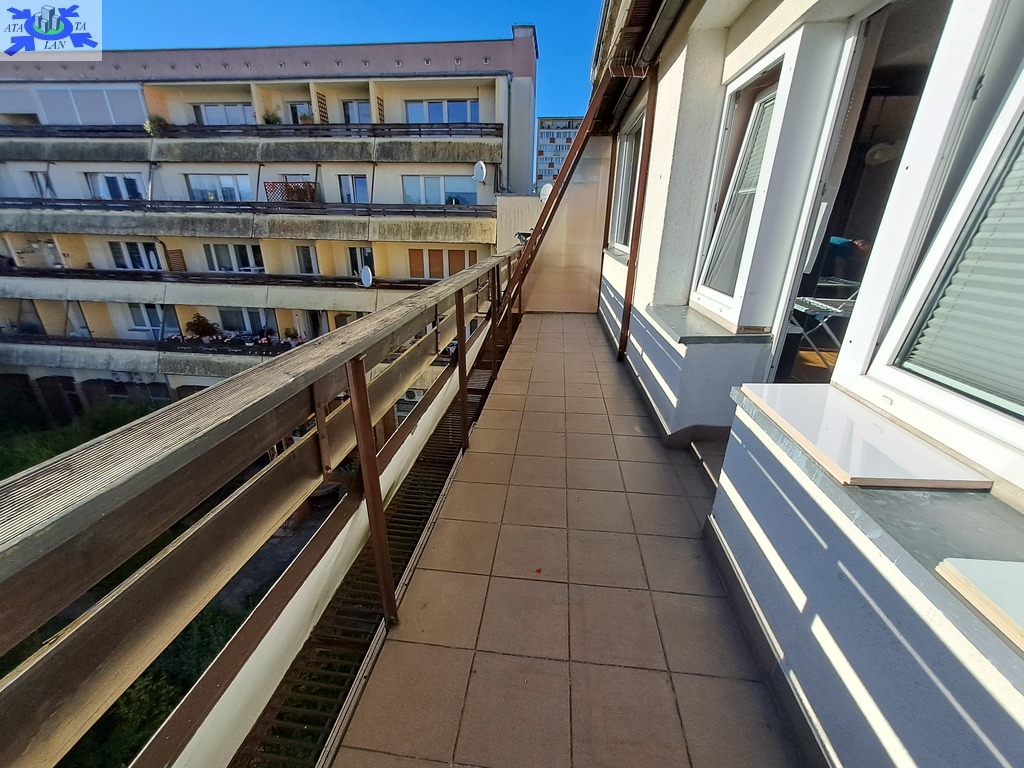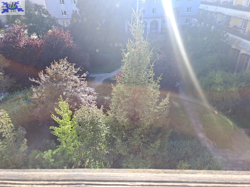 - salonu 18,5 m2 z balkonem na całej długości pokoju z widokiem na zielone podwórko od strony zachodniej,