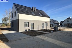 Dom został zaprojektowany w systemie energooszczędnym, co zapewnia niskie koszty utrzymania. Ogrzewanie podłogowe oraz panele fotowoltaiczne o mocy 5 kW gwarantują komfort termiczny i ekologiczne źródło energii. Każdy pokój wyposażony jest w niezależny system regulacji temperatury, co pozwala na dostosowanie warunków do indywidualnych potrzeb.