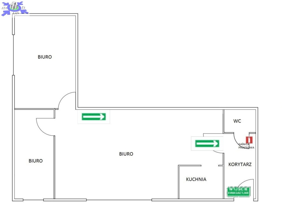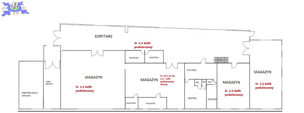 Budynek podzielony jest na część biurową ok 100 m2 oraz magazynową (rzuty w galerii).