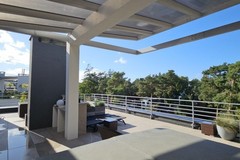 Prywatna winda wjeżdża bezpośrednio do apartamentu, a jego prawdziwym sercem jest taras o powierzchni około 80 m2. To przestrzeń do relaksu i spotkań w gronie bliskich - z częścią wypoczynkową, zadaszoną jadalnią i własnym jacuzzi z widokiem na korony drzew.