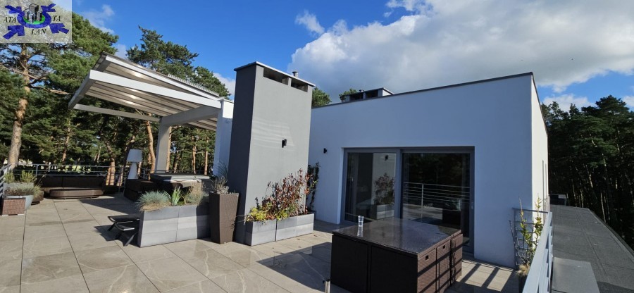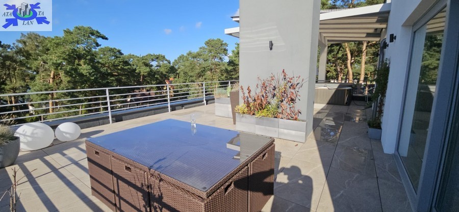 -ogromny taras ok. 80 m2 z jacuzzi i widokiem na nadmorski las