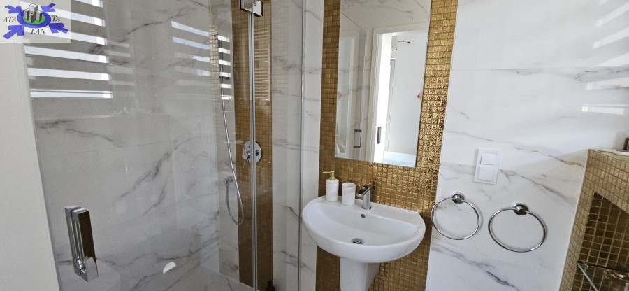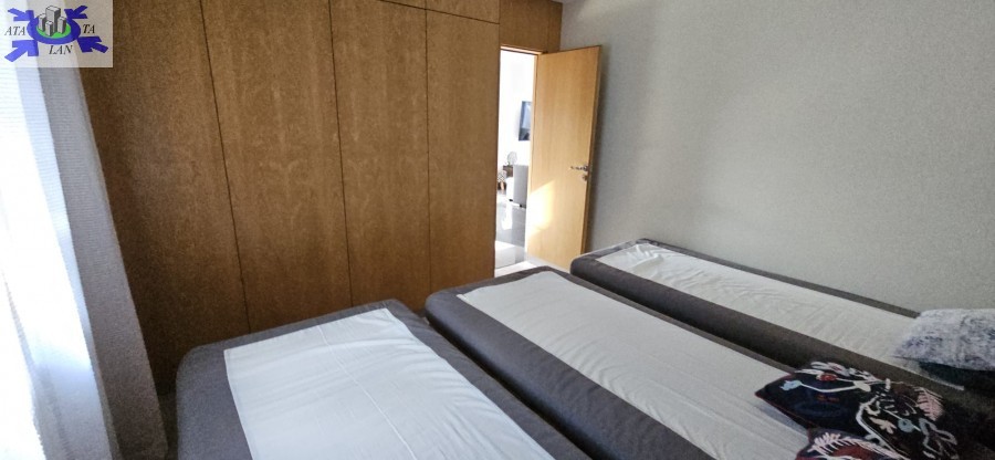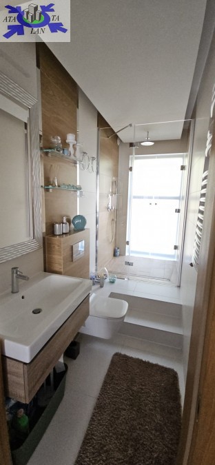 Przestronny salon z aneksem kuchennym łączy funkcjonalność z elegancją, a duże przeszklenia zapewniają doskonałe doświetlenie wnętrza. Dwie sypialnie i dwie stylowe łazienki sprawiają, że apartament jest idealny zarówno do prywatnego użytku, jak i do wynajmu premium.