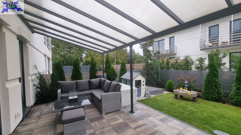 W ogrodzie znajdziesz liczne nasadzenia, domek ogrodowy o powierzchni 7 m2 oraz duży, zadaszony taras (20 m2), idealny na poranną kawę czy spotkania z przyjaciółmi.