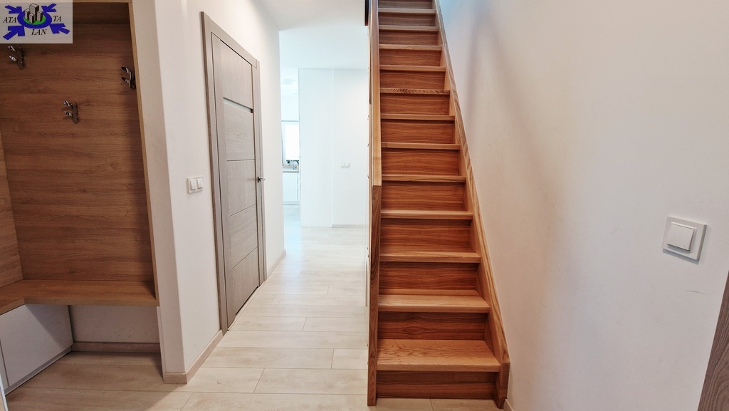 - korytarz z wnęką pełniącą rolę przedpokoju oraz zabudowaną przestrzenią pod schodami (11,11 m2 + 1,09 m2)