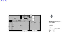 * W ogłoszeniu użyto poglądowych wizualizacji mających na celu zaprezentowanie potencjału aranżacyjnego mieszkania po remoncie - wg rzutu pokazującego układ salon z aneksem oraz 2 sypialnie.