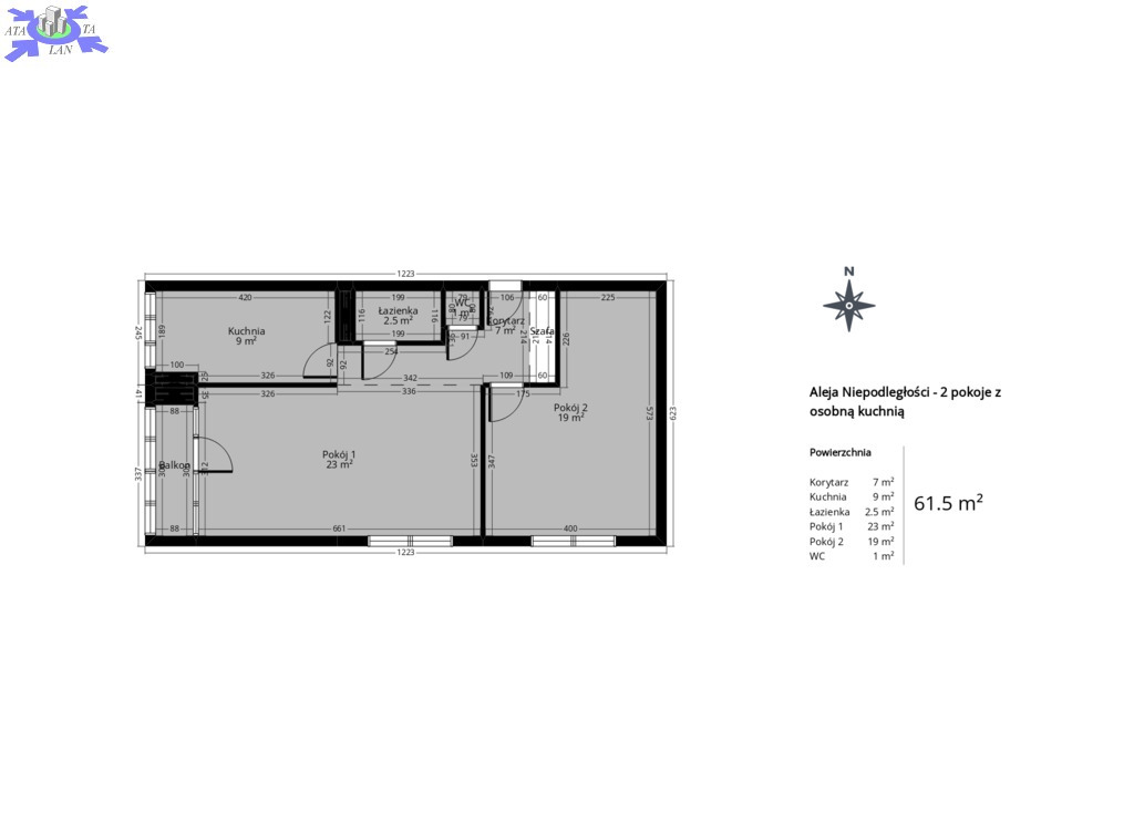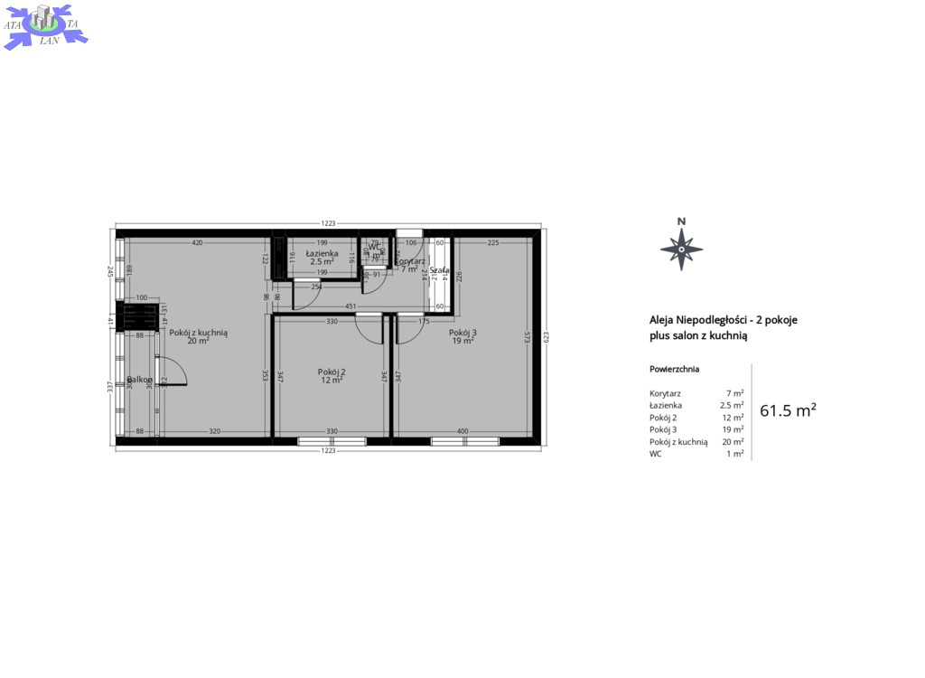 * W ogłoszeniu użyto poglądowych wizualizacji mających na celu zaprezentowanie potencjału aranżacyjnego mieszkania po remoncie - wg rzutu pokazującego układ salon z aneksem oraz 2 sypialnie.