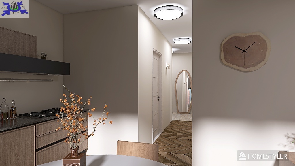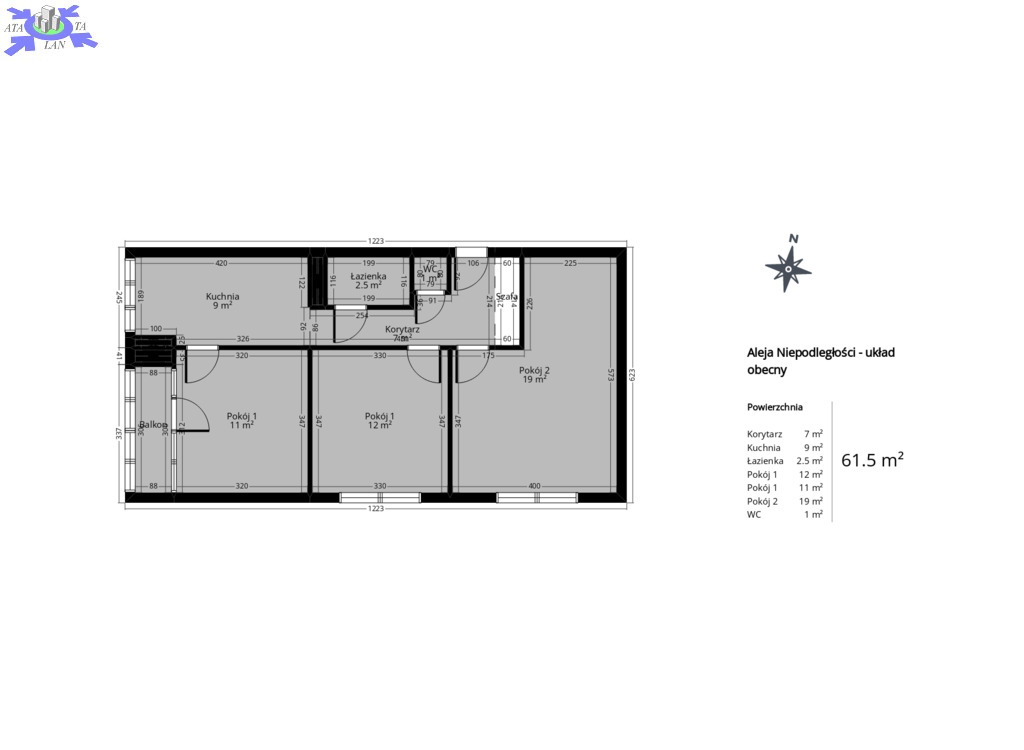 * w obecnym układzie mamy ustawny korytarz z szafą w zabudowie, 3 osobne pokoje, dużą kuchnię, łazienkę i osobno wc, zabudowany balkon