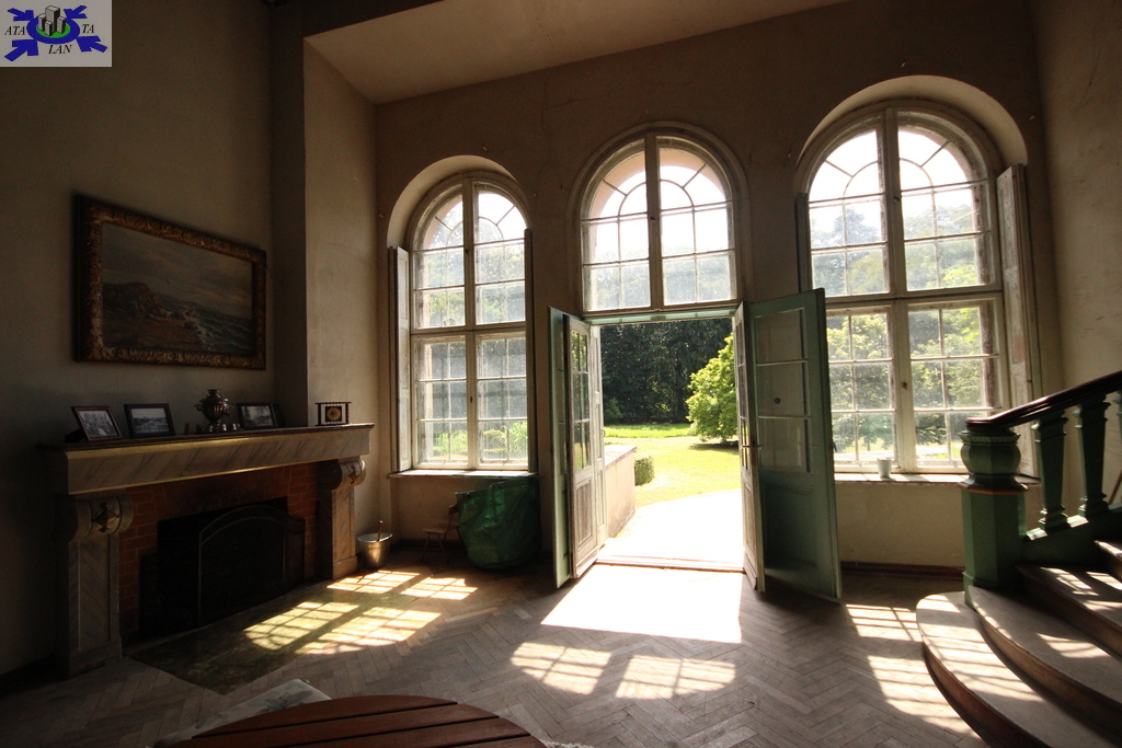 Parter dworu ma charakter dwutraktowy pośrodku jest przedsionek i reprezentacyjny hall z klatka schodową i galeryjką . Po północnej stronie sieni jest krótki korytarz międzytraktowy, za nim jadalnia a przy ścianie frontowej pomieszczenie z winda kuchnia ,łazienka i wc. Z kolei po lewej stronie hallu znajduje sie sala balowa skomunikowana z ww hallem, korytarzem i jadalnia. Po prawej stronie hallu i sieni znajduje sie część prywatna wtórnie podzielona 2 salony, 2 pokoje, sypialnia, kuchnia, łazienka .