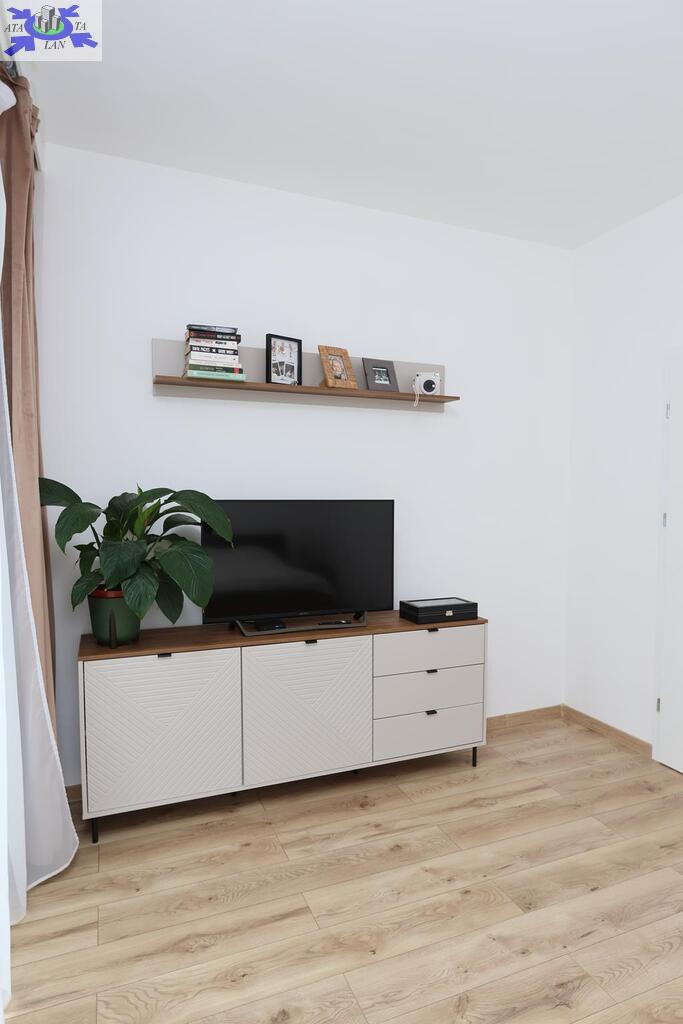 W cenie zakupu meble w stałej zabudowie pod wymiar (meble kuchenne, szafy), nowy sprzęt kuchenny w zabudowie.