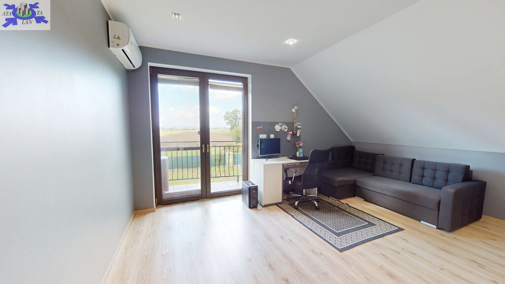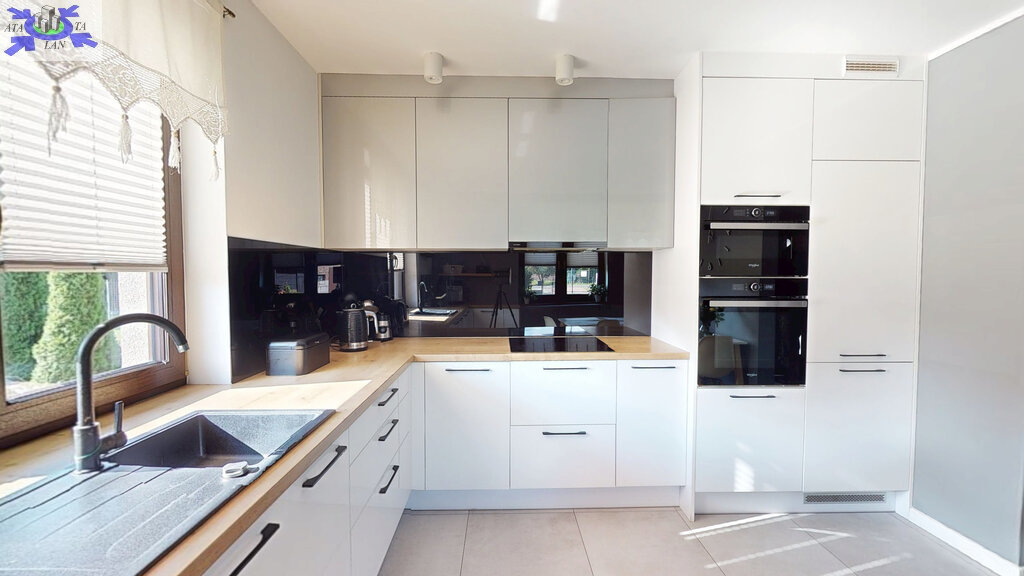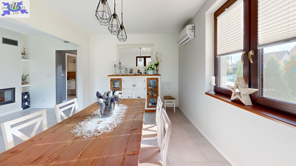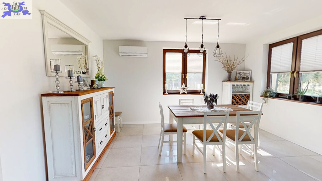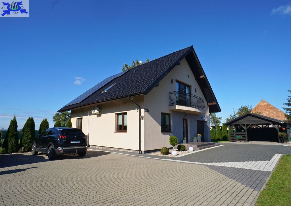 Standard i materiały Dom został wzniesiony w technologii tradycyjnej z dbałością o detale. Solidne, monolityczne stropy żelbetowe oraz dach o konstrukcji drewnianej, pokryty wysokiej jakości dachówką ceramiczną. Budynek jest doskonale zaizolowany termicznie (styropian na ścianach zewnętrznych, polistyren ekstrudowany na fundamentach oraz wełna mineralna na poddaszu), co przekłada się na niskie koszty utrzymania. Na dachu zainstalowano panele fotowoltaiczne, co stanowi dodatkowy atut ekologiczny i ekonomiczny.
