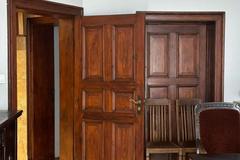 Wnętrze zachwyca oryginalnymi detalami - zachowane drzwi, sztukateria, wysokie sufity oraz deski podłogowe w pokojach tworzą unikalny klimat przedwojennego mieszkania. Dodatkowo, komfort podnosi kominek, który nadaje wnętrzom wyjątkowego charakteru.