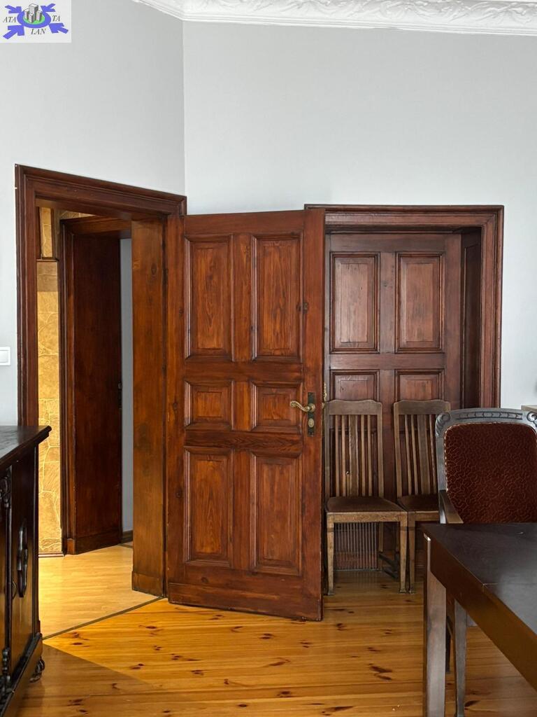 Wnętrze zachwyca oryginalnymi detalami - zachowane drzwi, sztukateria, wysokie sufity oraz deski podłogowe w pokojach tworzą unikalny klimat przedwojennego mieszkania. Dodatkowo, komfort podnosi kominek, który nadaje wnętrzom wyjątkowego charakteru.